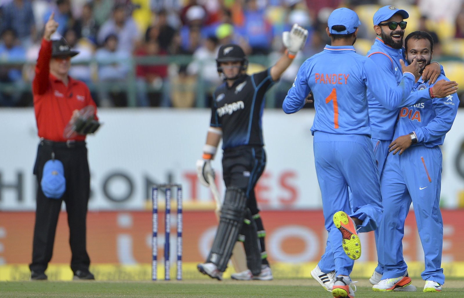 Early strikes: Umesh Yadav and debutant Hardik Pandya set the tone for the match in the opening 13 overs, reducing the BLACKCAPS to 48-5 with some impressive fast bowling up front. Where the match was won and lost.