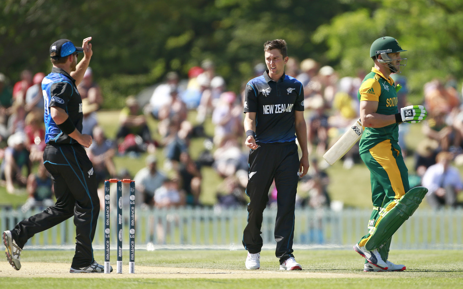 Terrific opening spells from Boult and Tim Southee ripped the heart out of South Africa’s top order, reducing them to 31-4. De Villiers (24) put up some fight, but a terrific catch by Brendon McCullum saw him head back to the sheds and South Africa all but out of the match.
