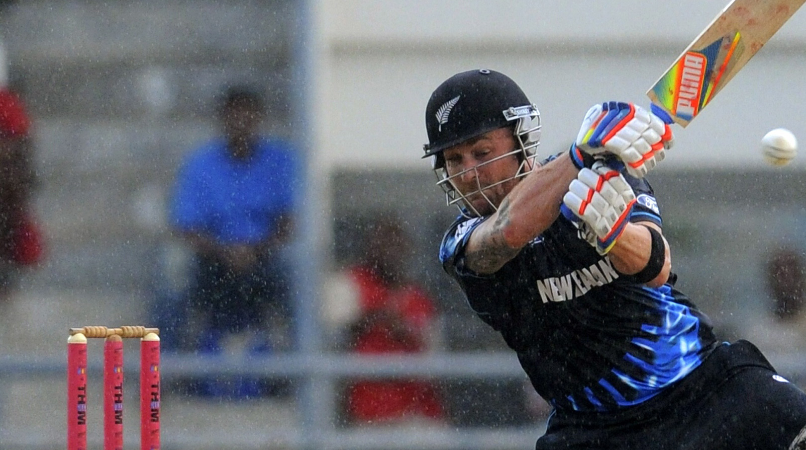 McCullum was all aggression, hitting Santokie for three successive fours in an effort to get the BLACKCAPS above the Duckworth Lewis target, taking the constant threat of rain into account. The pitch was damp by this stage, allowing the ball to skid on to the bat and making life tough for the West Indies bowlers.