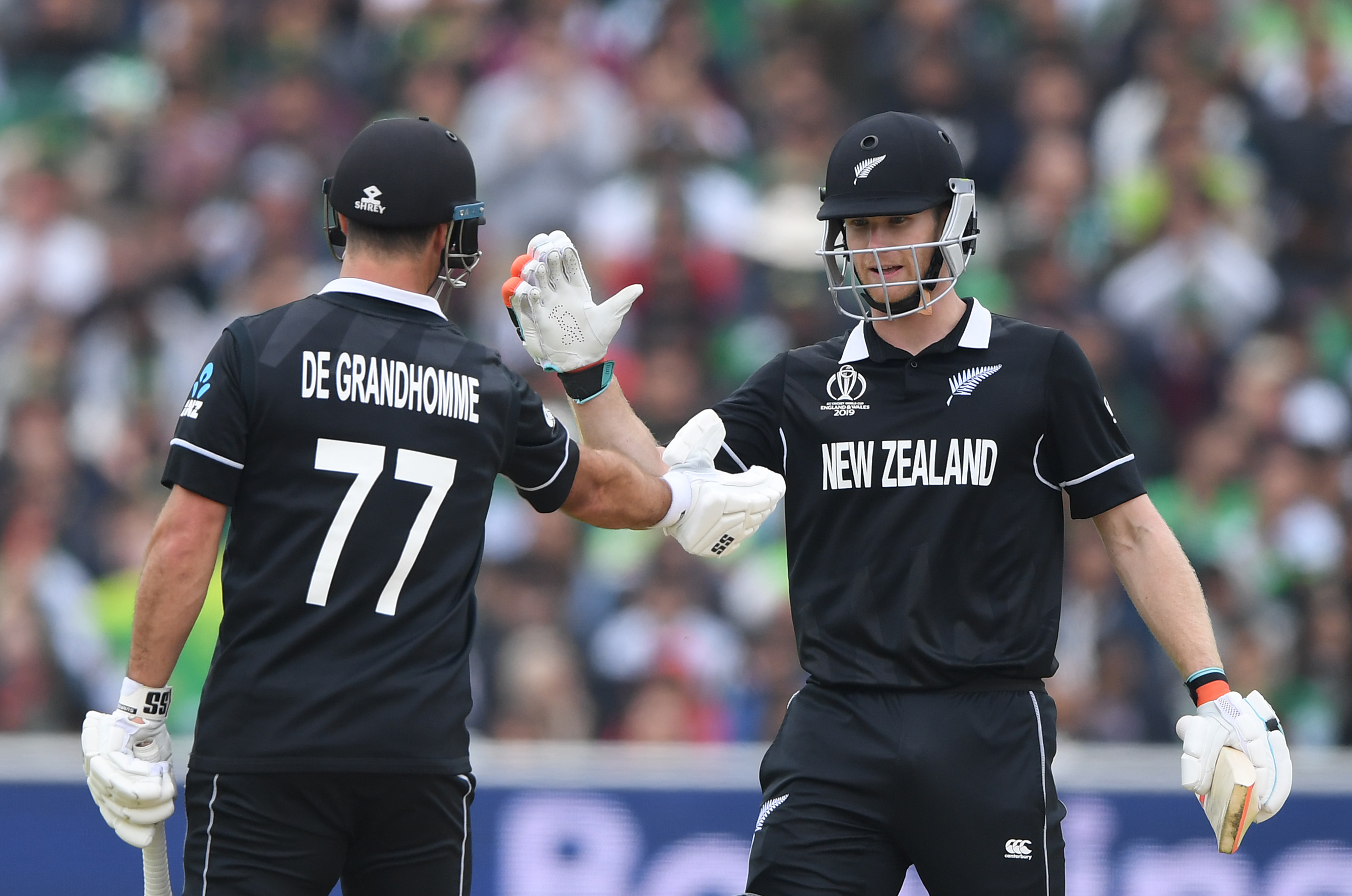 Pakistan have claimed a six wicket victory at Edgbaston, despite Jimmy Neesham and Colin de Grandhomme setting sixth wicket partnership records with the bat.