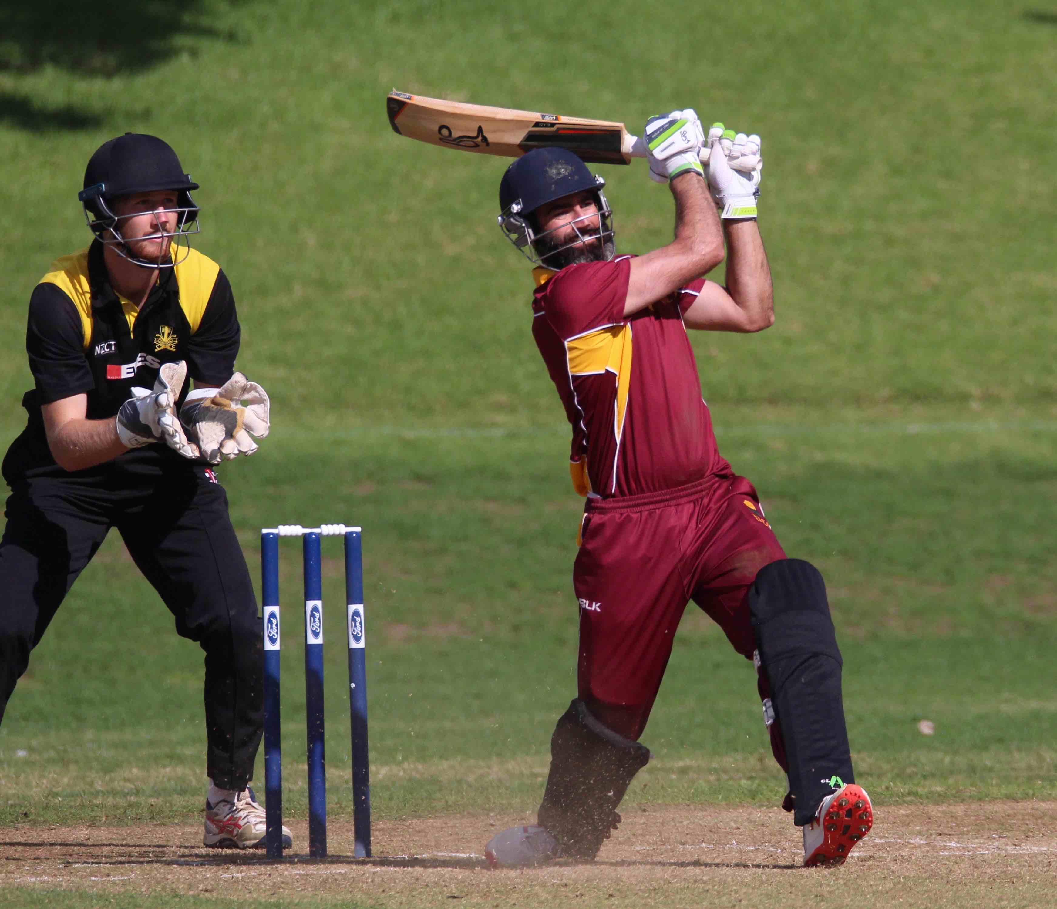 The left-hander was coming off a half century in the previous match on the Friday against challenging Easts, and a knock of 77 against Green Island before that. He was on course for a big one to finish on the number three ground, with its beckoning short, straight boundary, after his captain Brett Hampton won the toss and batted (a match reduced to 49 overs as the ground dried out from the previous day’s downpour).
