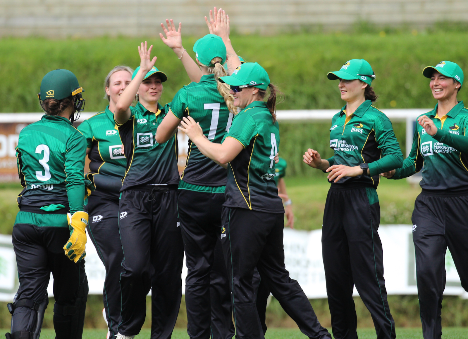 The Hinds were sharp in the field, sticking most of their catches and chasing hard on a slow outfield, with the showstopped a pinpoint throw from WHITE FERN Hannah Rowe from the deep square boundary to run out the dangerous and experienced Katie Perkins.