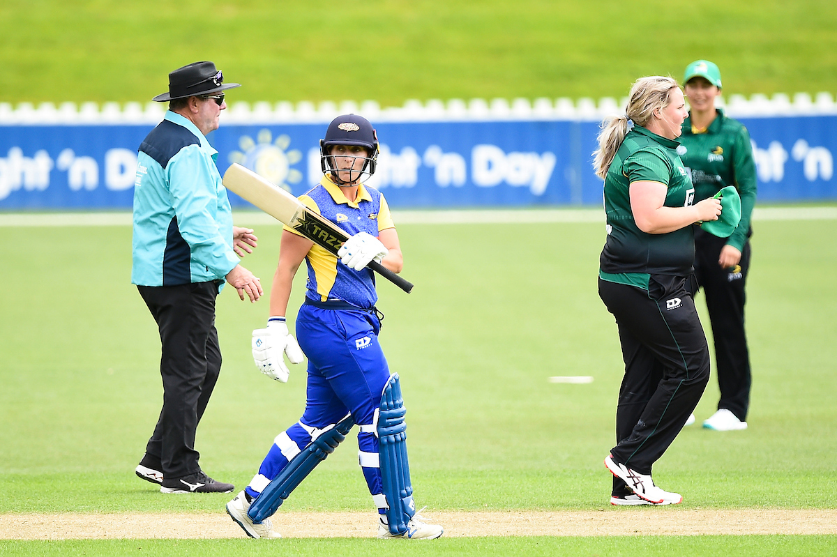 In reply, the Hinds lost their top four just 93 runs into the chase, Emma Black making two big, quick strikes at the top, including the big wicket of Natalie Dodd who played on.