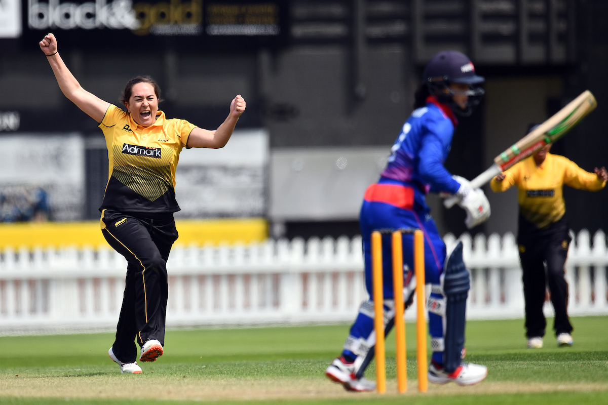 Sent in by new Hearts skipper Anna Peterson, Blaze had posted a total of 208 for five, Thamsyn Newton (above) top-scoring at four with a measured, unbeaten 52* off 92 balls, and later chipping in 2-15 with the ball to boot.