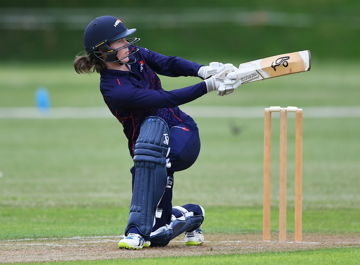 Three fifty partnerships followed between Down and Arlene Kelly (33) for the second wicket; Katie Perkins (30) and Holly Huddleston (31) for the fourth before Regina Lilii (24*) and Jesse Prasad (36) gave the innings a good finish with 65 for the seventh wicket.