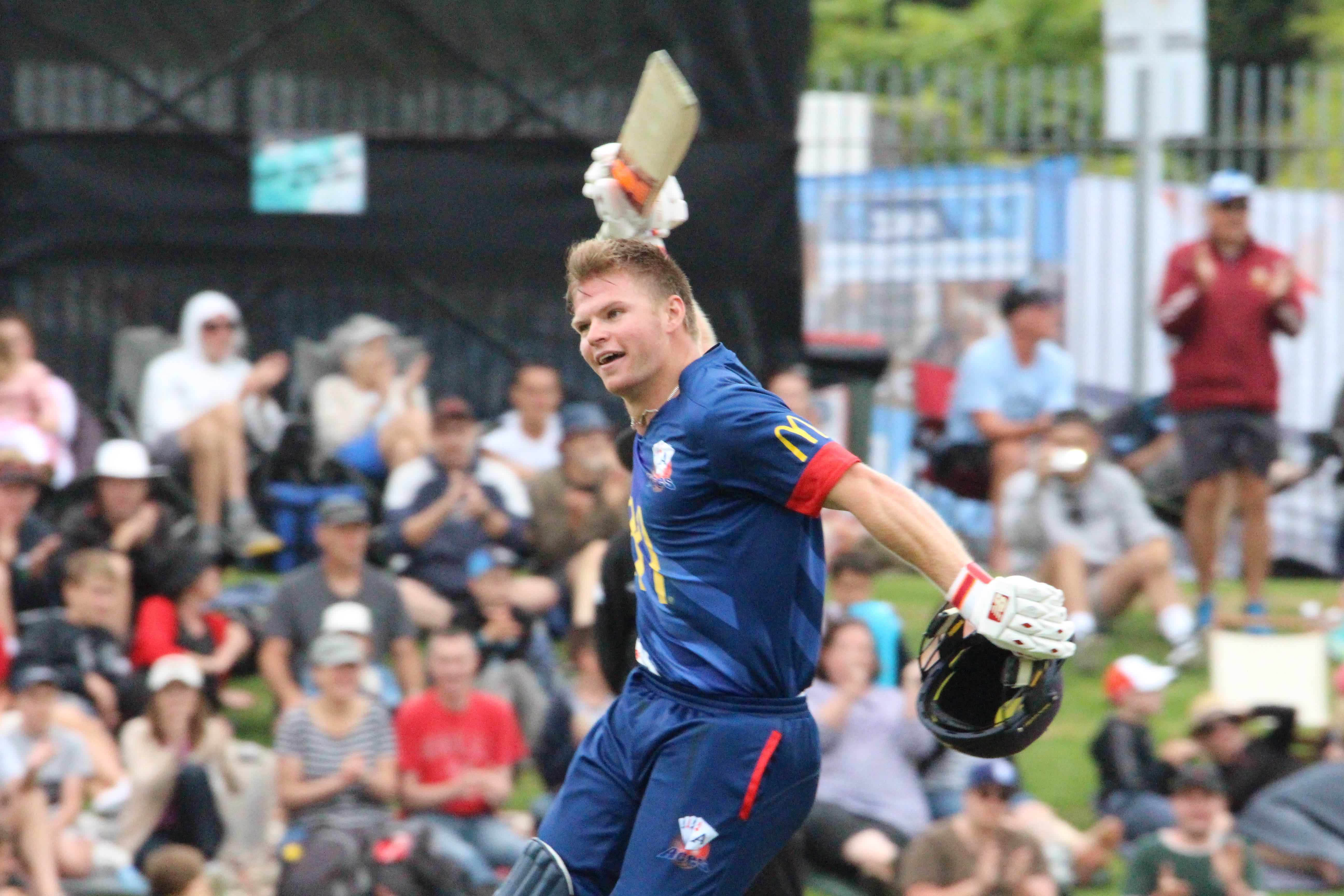 It was a heck of an occasion for the young man as they toned down the scoring for a short period against Seth Rance (who permitted only singles and a no ball off his 17th over), Allen carefully helping Phillips through to the breakthrough century — one that would go nicely with his three half centuries in his first McDonald’s Super Smash summer.