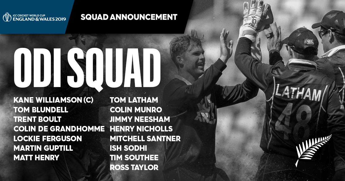 Trent Boult, Matt Henry and speedster Lockie Ferguson round off the pace-bowlers with Mitchell Santner and Ish Sodhi selected as the spinners.
