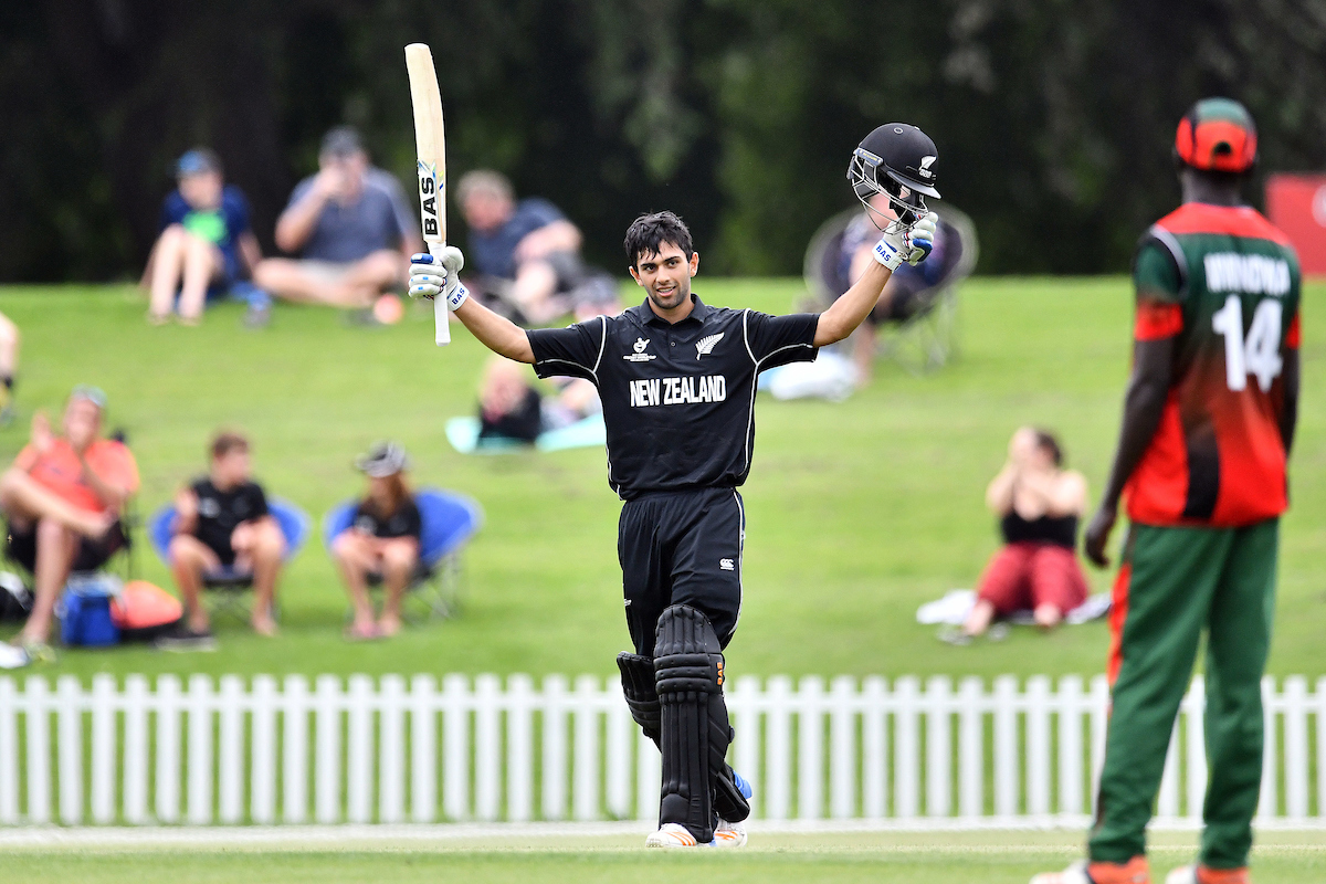 Bhula made a tournament record 180 as New Zealand amassed 436 against Kenya. He and Ravindra putting on a record stand of 245 for the first wicket.