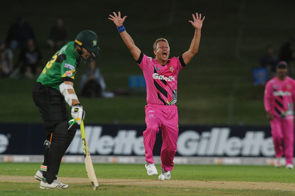 If the Knights hadn’t already made the perfect start, they certainly had 11 balls later as Kuggeleijn removed the Super Smash’s top run-scorer and their nemesis in the return fixture earlier in the season, Tom Bruce, caught-behind for four. The sixth over saw the departure of Kieran Noema-Barnett with a beautiful yorker from Wagner sending his stumps cartwheeling. The Stags had found themselves 42-4 and their chase seemingly over before it had begun; Dean Foxcroft providing the only resistance to be 18*.