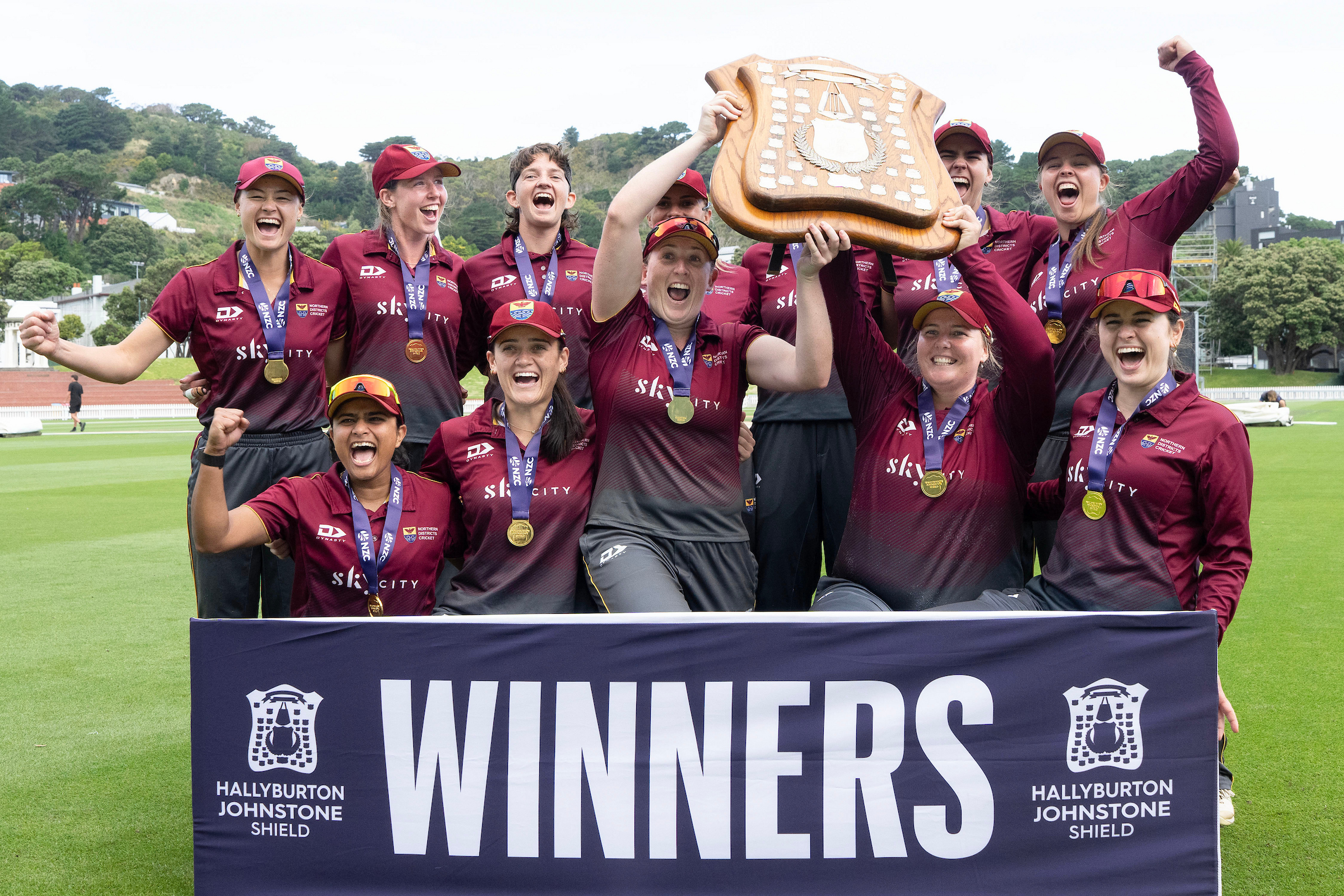 History has been made today at the Cello Basin Reserve after Northern Districts won their first national women’s cricket title — defeating Wellington Blaze by 67 runs to lift NZC’s Hallyburton Johnstone Shield one-day trophy.